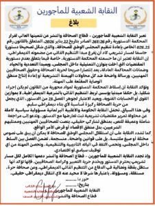 وبناءً عليه، ووفاء منها لمسؤوليتها النقابية والحقوقية في الدفاع عن كرامة الصحافيين وإستقلال مؤسساتهم المهنية، أصدرت النقابة الشعبية للمأجورين – قطاع الصحافة والنشر بلاغا للرأي العام هذا نصه: