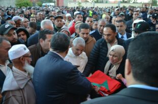 متابعة/هشام ملاس عاشت مدينة بوجنيبة، مساء الجمعة 27 مارس 2026، على وقع لحظات مؤثرة، خلال تشييع جثمان الشرطي رشيد رزوق، الذي وافته المنية متأثرا بإصاباته أثناء أدائه لواجبه المهني، حيث ووري الثرى بمسقط رأسه وسط حضور رسمي بارز وجموع غفيرة من المواطنين. وشهدت مراسيم التشييع حضور شخصيات قضائية وأمنية رفيعة، …